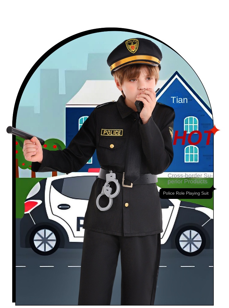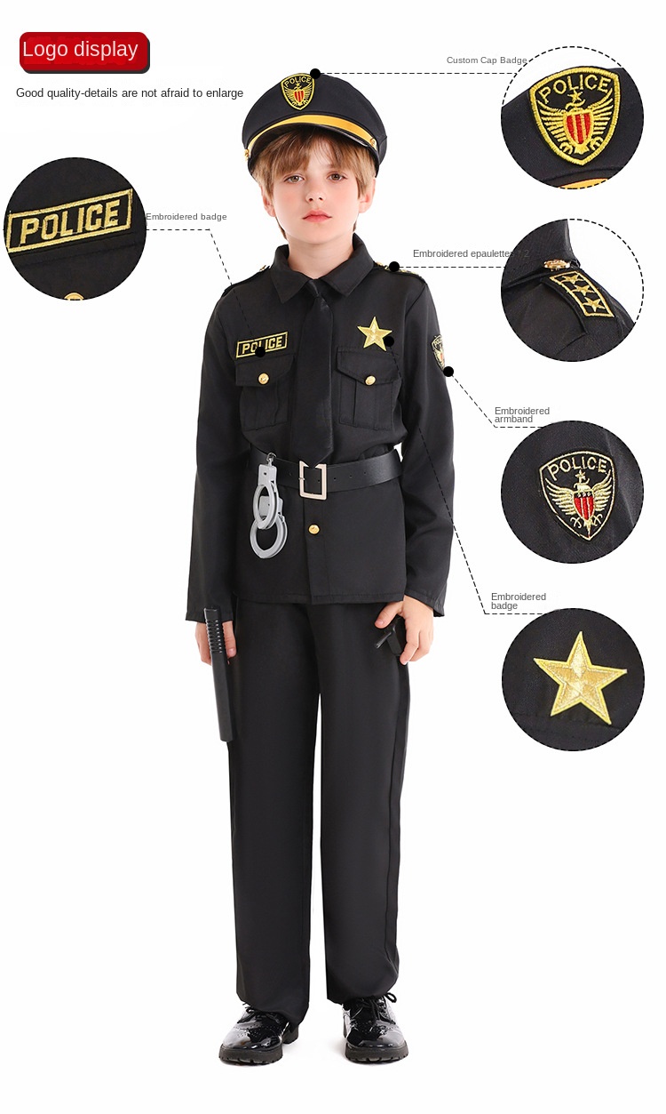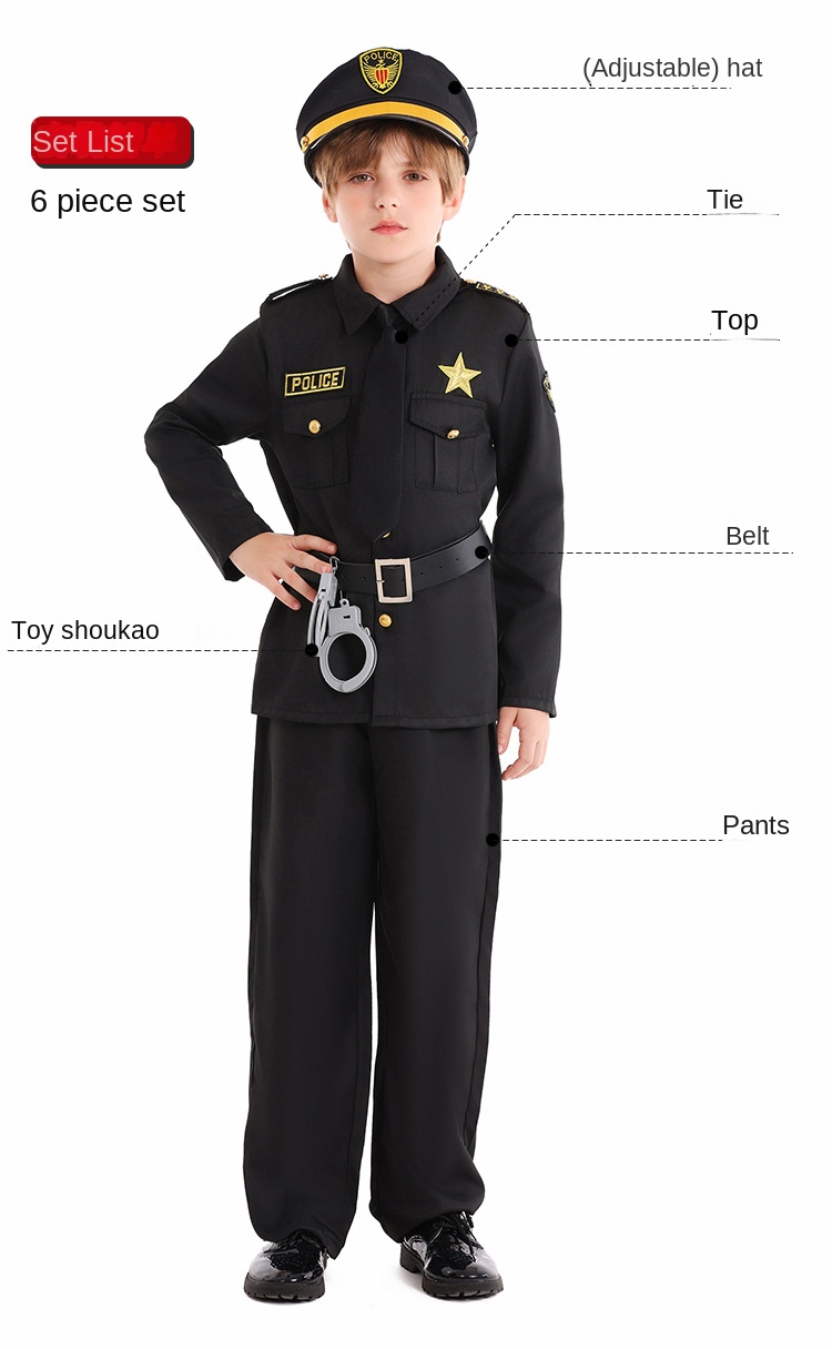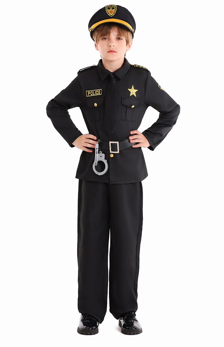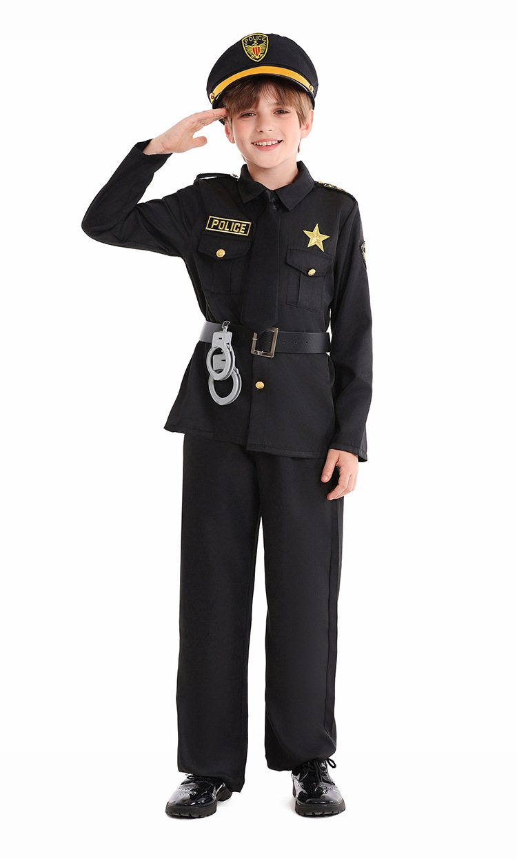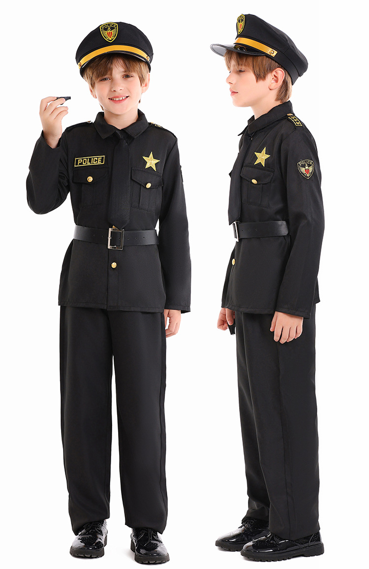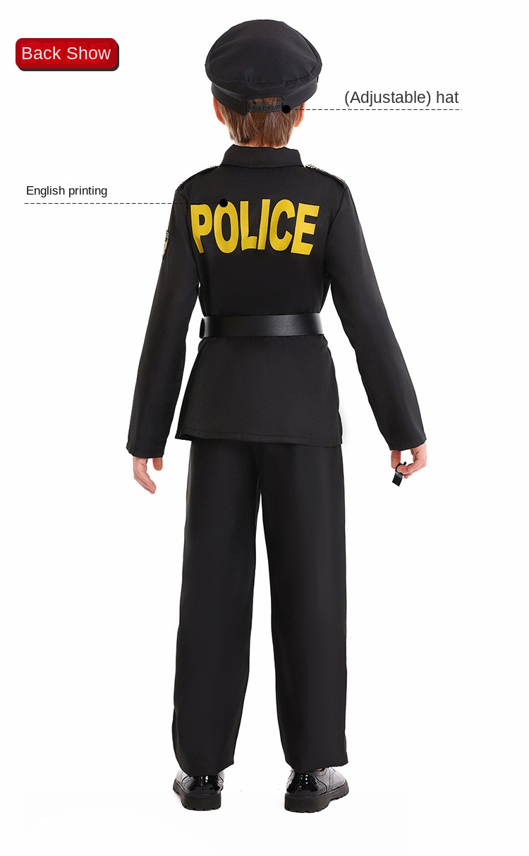 Halloween Kids Costume Black Police Officer Role Play Party Festival Performance Outfit for Boys